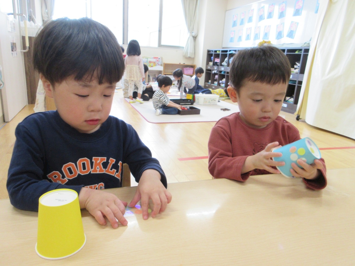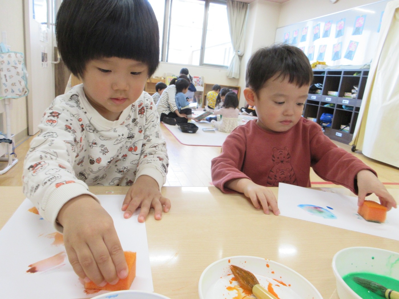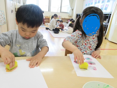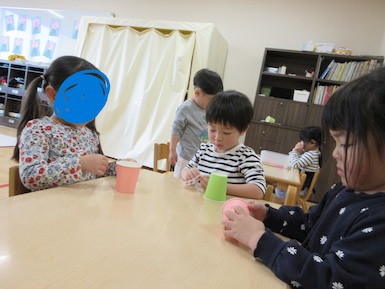 たけのこにゅ~す ~製作~ 2026年04月27日 今日はこいのぼりの製作をしました! 好きな色を選んで、スポンジでこいのぼりの模様を描いたり、紙コップにシールを貼ったりして楽しみながら製作をすることが出来ていましたよ♡
