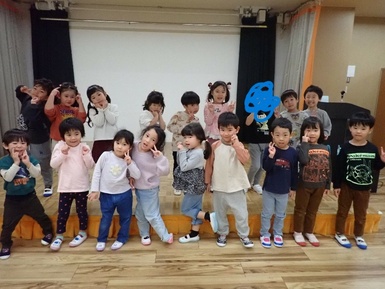 今日は室内でのんびり遊んだあと、ホールで発表会の劇ごっこをしました!