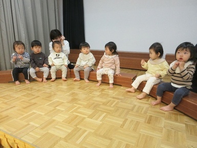 発表会ごっこでは、ステージの幕が閉まることに驚くお友だちもいましたが、保育者と一緒に楽しみながら
