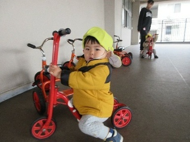 第3園庭では、滑り台を滑ったり、乗用玩具に乗ったりして体を動かしながら遊びを楽しむつぼみ組さんでした♡