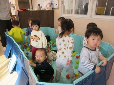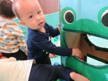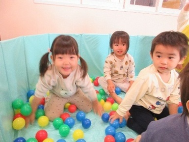 一番人気のボールプールでは寝そべってみたり、ボールを外に投げてみたりしてましたよ♬