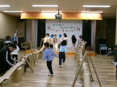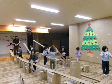 どうやったら最後までビー玉を転がすことができるのか考え、みんなで工夫して遊んでいましたよ♪