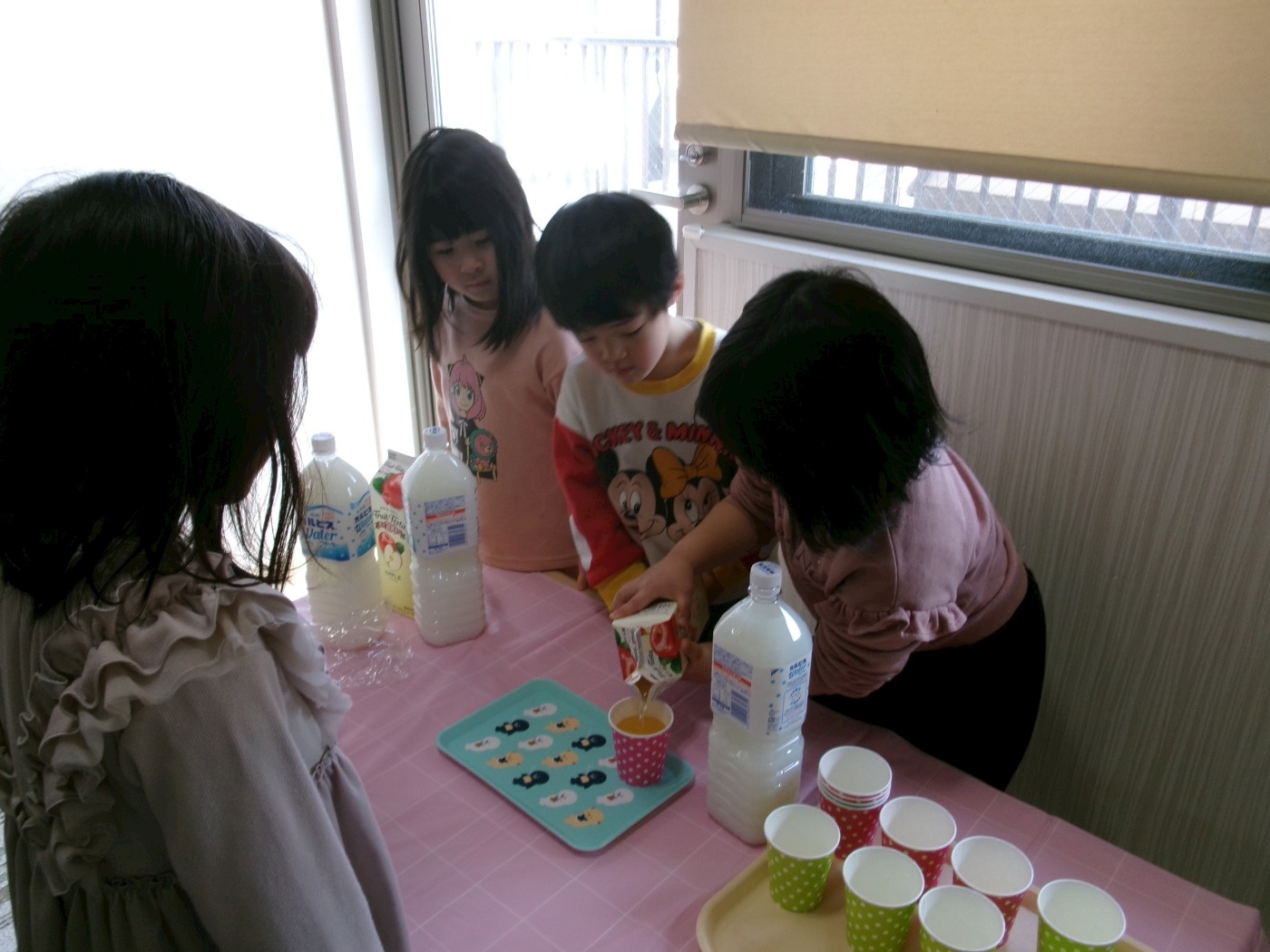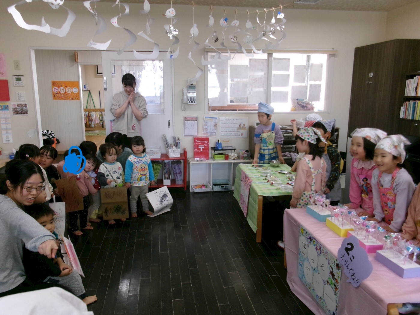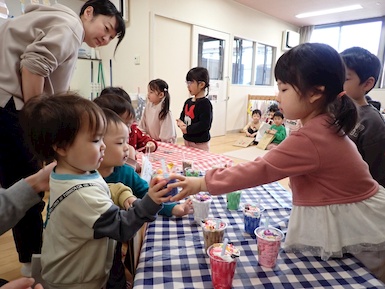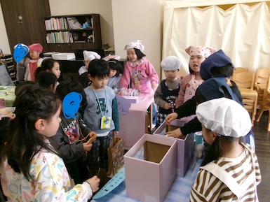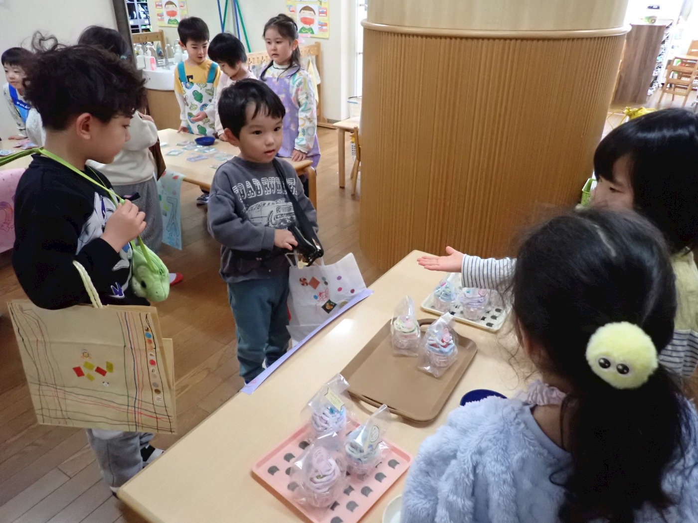 合同にゅ~す ~お店屋さんごっこ~ 2026年02月16日 今日はお店屋さんごっこがありました! お店屋さんごっこをずっと楽しみにしていた子どもたち^^ 今日のために一生懸命作った商品を並べて、大きな声で「いらっしゃいませー!」と店員さんになりきっていましたよ♪ お店屋さんごっこの後は、美味しいジュースとホットケーキをクラスのみんなで食べて楽しんでいましたよ♡ Tweet
