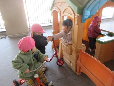 どんぐりにゅ~す ~第3園庭~ 2026年03月12日 今日は第3園庭で遊びました。 今日は、靴を持って園庭に着いてから履いてみました! 途中、靴を落としてしまうこともありましたが、最後まで頑張ってくれました! 園庭では、かけっこや三輪車に乗って体を十分に動かして遊ぶことが出来ましたよ^^ Tweet