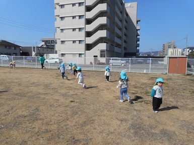 つくしにゅ~す ~東側園庭~ 2026年03月17日 今日は東側園庭に遊びに行きました。 園庭に小さな虫がたくさん飛んでいて、「せんせい、むし!」「むしいや!」と逃げている子どもが多かったです(笑) 春を感じました!(笑) 途中からつぼみ組さんが来たので、一緒に遊びましたよ^^ Tweet