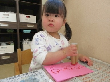 色も自分たちで選んで、カードを作ってお父さんにあげてねと声掛けすると「はーい」と手を挙げてお返事してくれるどんぐり組さんでした(笑)