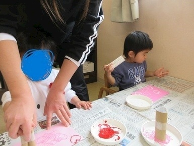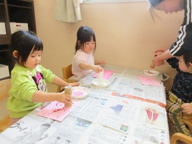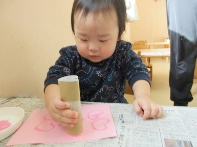 スタンプをするとハートの形になっていることに気づき嬉しそうにポンポン押してましたよ♪