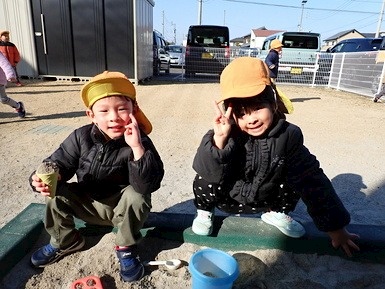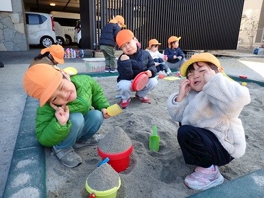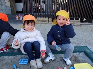 砂場では、アイスやケーキなどたくさんの料理を作りました!