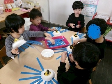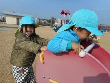 少しずつコツを掴み、上手く貼ることができていました^^その後は第二園庭で遊びました。