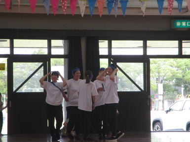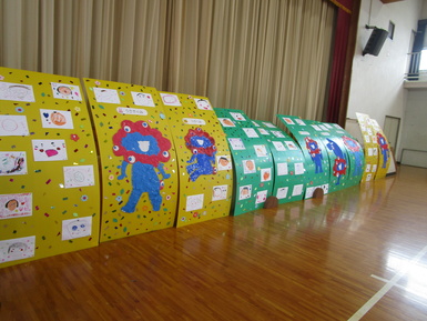 今年の門柱(入場・退場門)は、【万博】をテーマに各クラス【ミャクミャク】をつくりました。