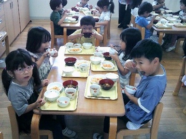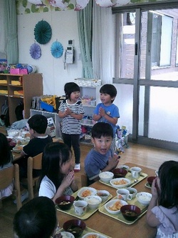 給食では、お当番さんの号令で挨拶をすることができるようになってきました!