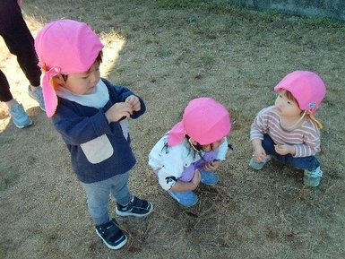 また、お花を触って「きれいだね!」、アリを見つけて「アリさんうごいてるね!」と言って、興味津々な様子で自然に触れて楽しむ姿も見られましたよ(*^-^*)