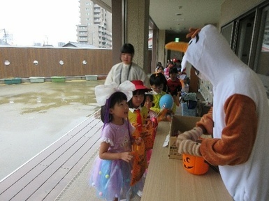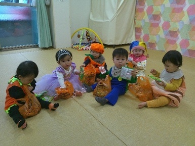 お誕生日会・ハロウィンパーティー終了後、各クラスずつお菓子をもらいにまわりました(^^♪