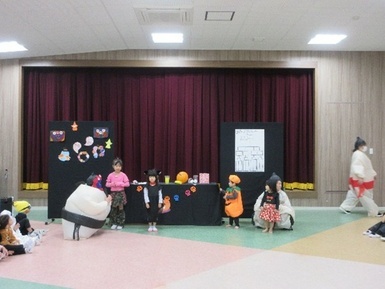 魔女さんとミャクミャクさんによるお話を楽しく聞いたり、マジックを見たりしてハロウィンに親しみを持っていました♡