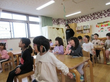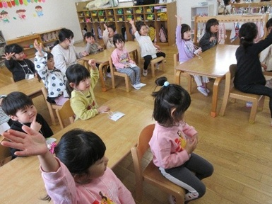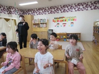 自分の名前や気分を答えたり、気分を示す単語を音楽に合わせて楽しく体を動かしたりしながら学びました☺
