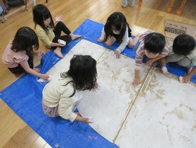 各チームそれぞれが、「みんなで協力して塗ろうね!」「がんばるぞー!えいえいおー!」といって活動に取り組んでいましたよ☺