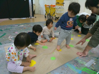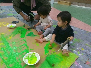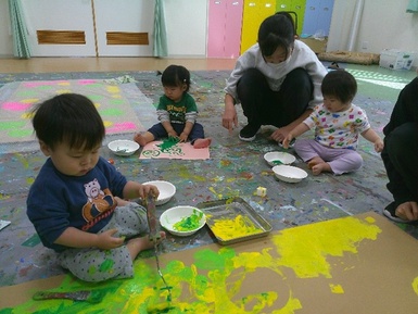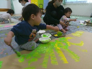 アーキペラゴは初めての活動でしたが、手足に絵の具をつけながらしっかり楽しんでいましたよ♡
