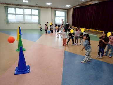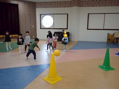 今日はホールでボール投げをしました!前回の活動をよく覚えており、「コーンにむかってなげる!」「上らへんにあてる!」と、意欲的に取り組む姿が見られました☆彡前回よりも、コーンに当てたり、ボールのスピードが上がっていたりとどんどん上手になってきているひつじ組さん♡またみんなで楽しく練習しようね(*^^*)