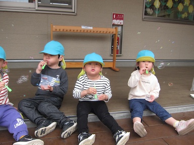 こあらにゅ~す ~戸外遊び~ 2026年04月27日 園庭でしゃぼん玉と三輪車などの乗用玩具遊びをしました! しゃぼん玉あそびが人気でみんなで楽しんでおり、大きいサイズから小さいしゃぼん玉をいっぱい作ってにこにこ笑って遊んでいました(*'ω'*) Tweet