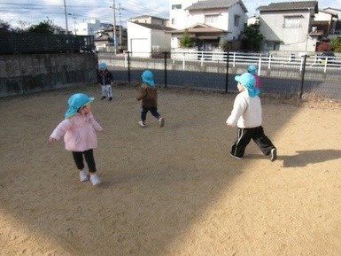 友だちと一緒に追いかけっこを楽しんで体も心も温まりにこにこ笑顔でした(*^-^*)