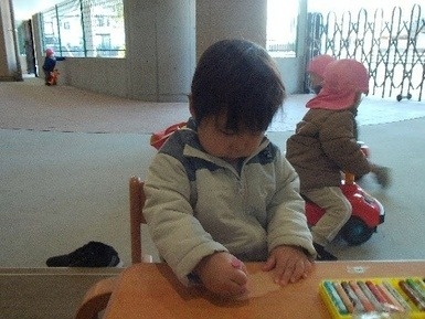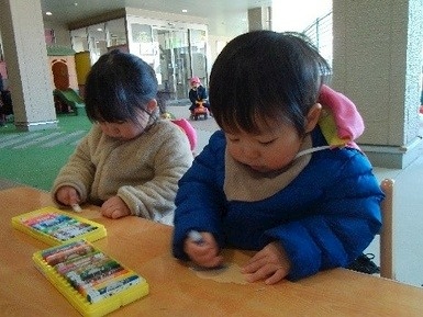 活動後半になると、色鉛筆で装飾したり、ごっこ遊びをしたりと、遊びが広がっていました♬