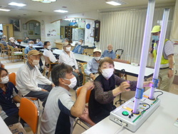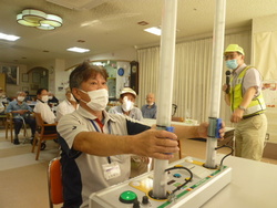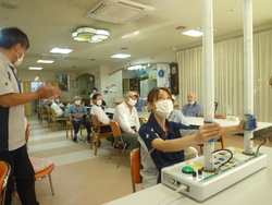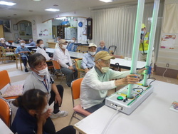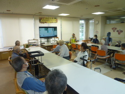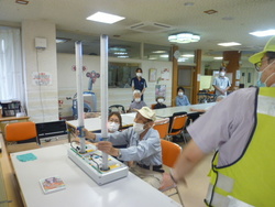 交通安全協会より先生が来られました。安全をよびかけるDVDと反射神経を認識するための体験機を持参してくださいました。