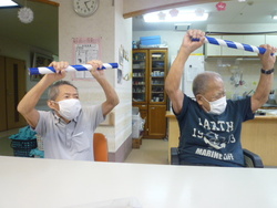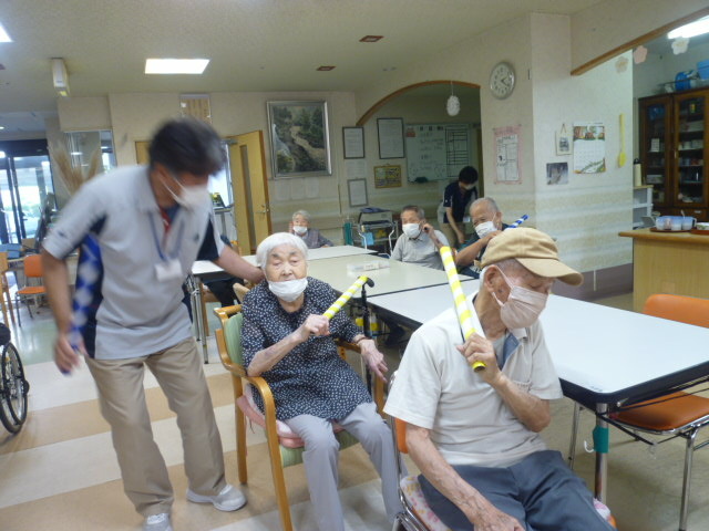 棒体操始めました 2025年09月24日 すみれ荘デイサービスセンターです(^^♪ 上下肢体操の時間に新メニュー、棒を使った『棒体操』を取り入れました。 棒はラップの芯を使っており、軽いのですが肩を叩くといい具合です! 手首を上下に返したり、左右にこねたり、大きく息を吸いながら持ち上げたり、前後に腕を伸ばしたり… とても身体がほぐれる体操となっています(^o^)丿 痛みが出ない範囲で無理なく、一緒にお身体をほぐしましょう♪ Tweet