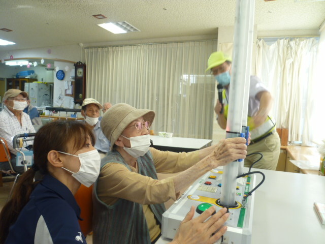 交通安全協会より先生が来られました。安全をよびかけるDVDと反射神経を認識するための体験機を持参してくださいました。