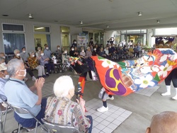 獅子舞見学 2025年10月26日 すっかり秋めいて来ました。 すみれ荘デイサービスセンターです(*^^*) 今月の秋祭りの獅子舞慰問の様子をご報告いたします。 獅子連「宝地獅子」「下所獅子」「田中地区 宮尾獅子」「本村獅子組」の獅子舞いがデイサービスセンターにて披露いただきました! 他にもお写真はないのですが「高中原獅子・西尾獅子・丸岡奴隊・城獅子・池田川東獅子・川島宮尾獅子組・葛谷獅子隊」 本当に多くの地域のみなさまにお越しいただきました。 秋祭りが味わえる貴重な体験をさせていただきました事、感謝いたします。 Tweet