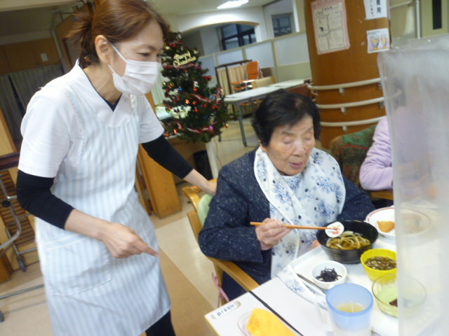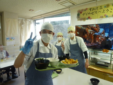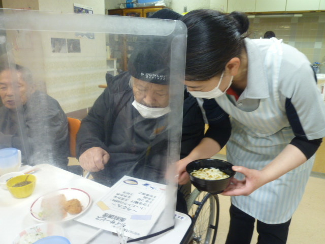 面前調理:うどんトッピング 2025年12月30日 すみれ荘デイサービスセンターです! 今月は面前調理にうどんのトッピングを選べるうれしい時間がありました。 厨房職員によるうどん屋さんさながらの湯切りを楽しみつつ、トッピングを何を乗せるか選んで頂きました。 一番人気は*かき揚げで季節のお野菜が味わえました。 二番人気は*肉です。甘辛味のお肉でした。 他にも、わかめやきつねなども喜ばれていました。 次回はどんな、面前調理を提供できるかお楽しみになさっていてください。 Tweet