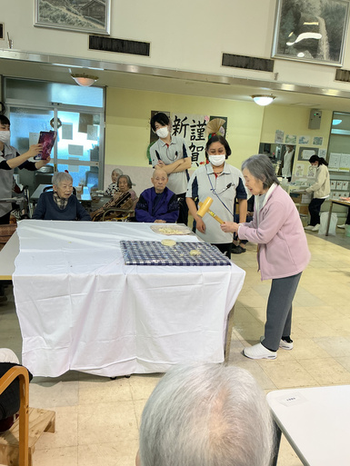 鏡開き 2026年02月01日 寒い日が続きますが、 いかがお過ごしでしょうか? 先日、お正月にお供えしていた鏡餅を下ろし、 鏡開きを行いました。 硬くなった鏡餅を木づちで開くのによいしょがいりましたが、 季節の行事を楽しまれている様子でした。 皆さんでぜんざいを召し上がっていただいています。 Tweet