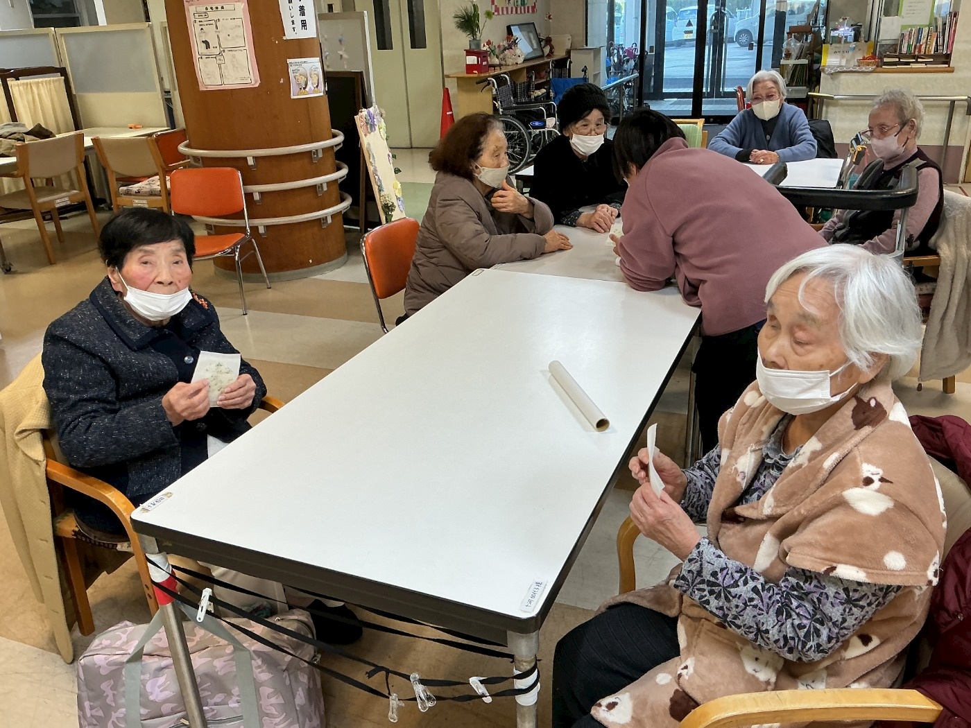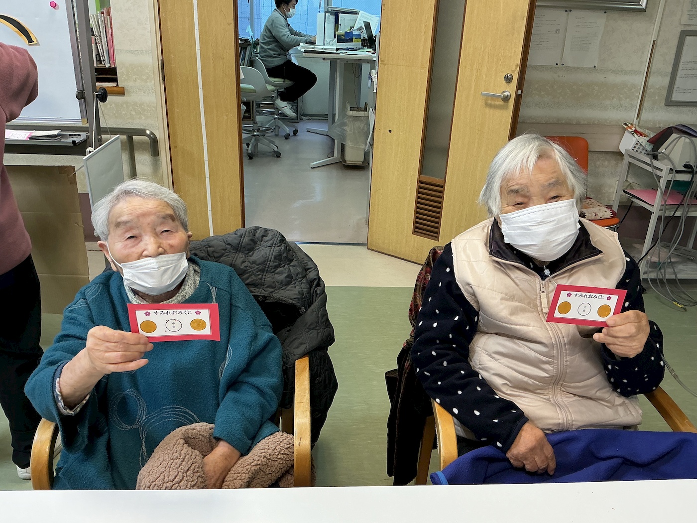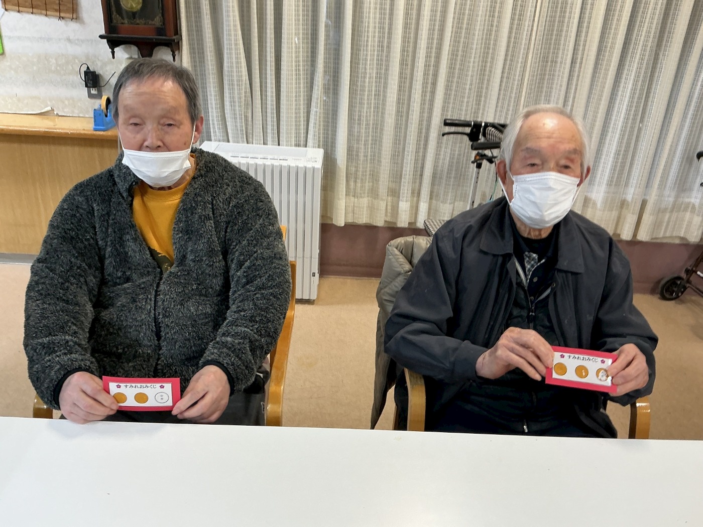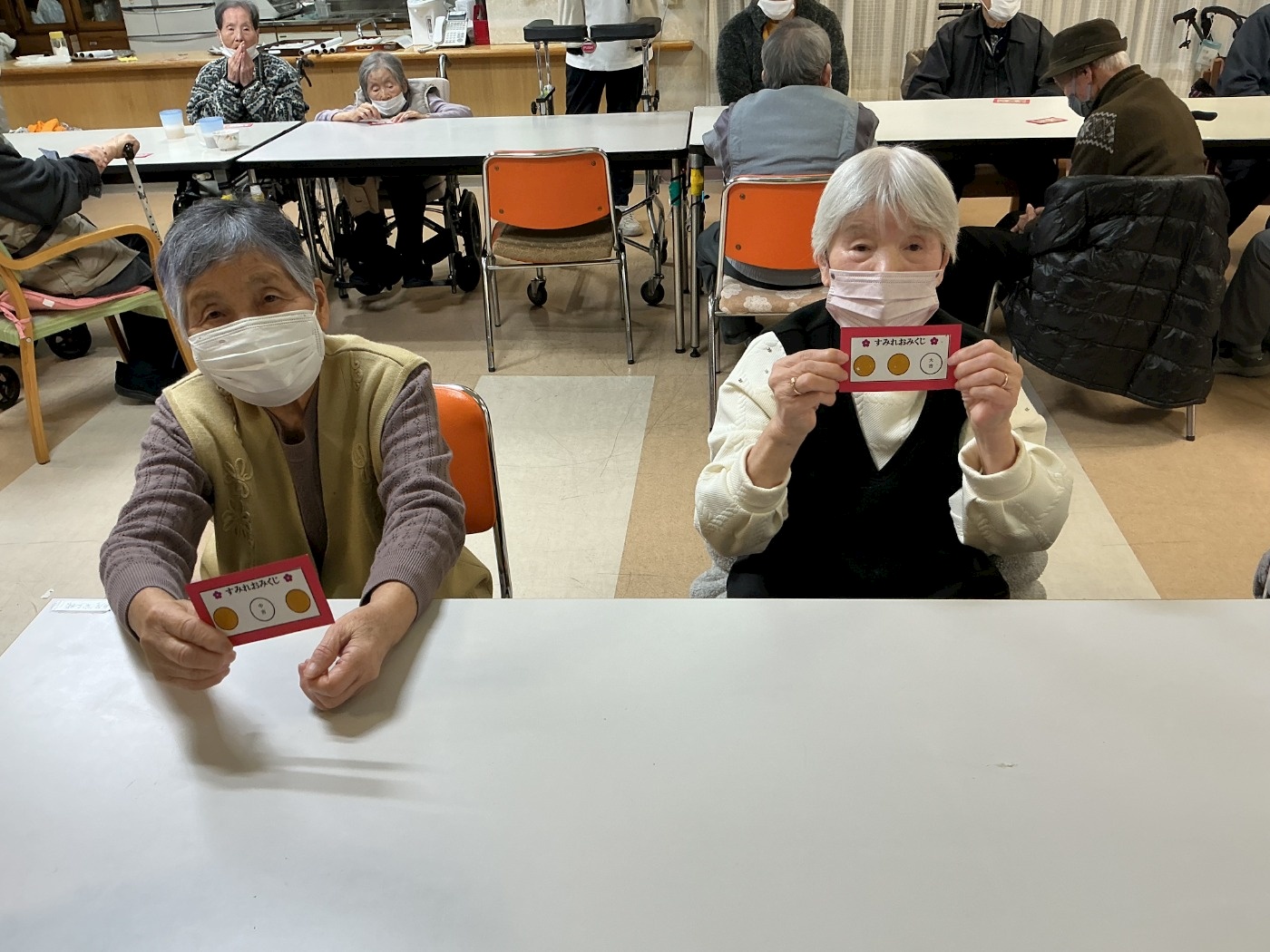 お煎餅が出来上がるまでの待ち時間に職員手作りの『おみくじ』に挑戦していただきました。