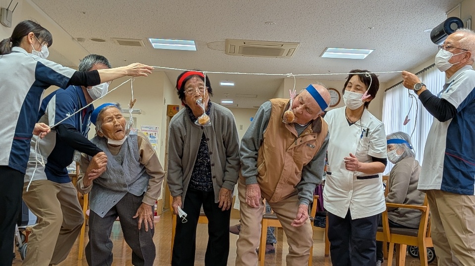 やまぶきデイサービス大運動会 2025年11月25日 デイサービスで運動会を行いました。 ラジオ体操・スプーンレース・玉入れ・パン食い競争 皆さん、童心にかえり満点の笑顔で競技に参加されました。 特におやつのかかったパン食い競争ではしっかりパンをくわえてゴールまで駆け抜けていました。 Tweet