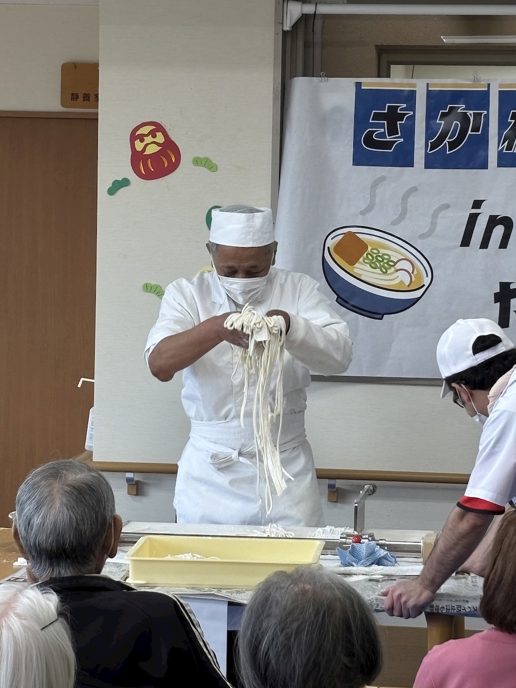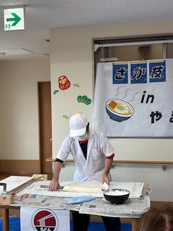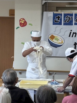 さか枝うどん実演 2026年04月14日 やまぶきの恒例行事となった、さか枝うどんの実演がありました。今回も仏生山の森デイサービスセンターも参加し、いつもと違った方々との交流が楽しめました。また、ご家族様にも来荘していただき、一緒に食事をして楽しいひとときを過ごしました。 ご家族様・ご利用者様からは、「このイベントを楽しみにしていた。」との声も聴かれています。 Tweet